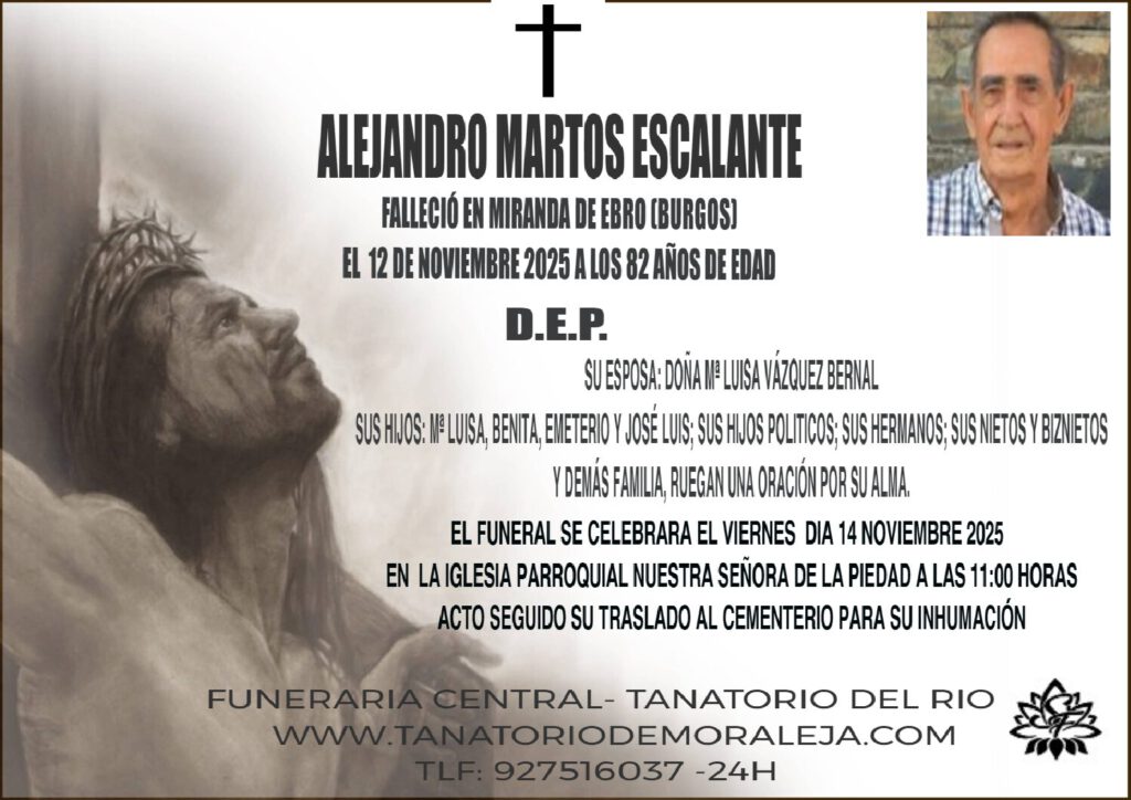 FALLECIO EN MIRANDA DE EBRO EL DIA 12 DE NOVIEMBRE DEL 2025 A LOS 82 AÑOS DE EDAD D.E.P SUS ESPOSA MARIA LUIS AVAZQUEZ BERNAL SUS HIJOS NIETOS HERMANOS Y DEMAS FAMILIA RUEGA UNA ORACION POR SU ALMA. FUNERAL SE CELEBRA EL VIERNES DIA 14 DE NOVIEMBRE DEL 2025 A LAS 11:00 HORAS EN LA […]