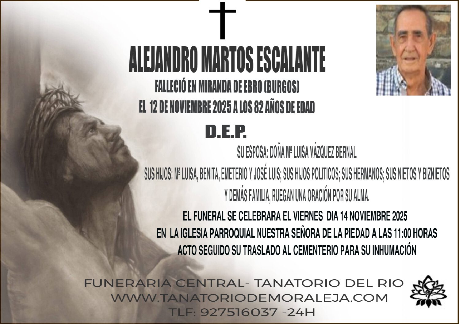 FUNERAL SE CELEBRA EL VIERNES DIA 14 DE NOVIEMBRE DEL 2025 A LAS 11:00 HORAS EN LA IGLESIA PARROQUIAL NUESTRA SEÑORA DE LA PIEDAD DE MORALEJA